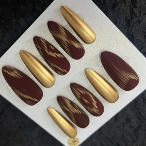N066 Gold-Brown Color-Block Matte Leopard Print Almond Press-On Nails