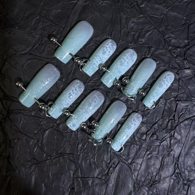 Be the first to review “N019 Mint Green Fine Glitter Lace Long Square Press-On Nails”