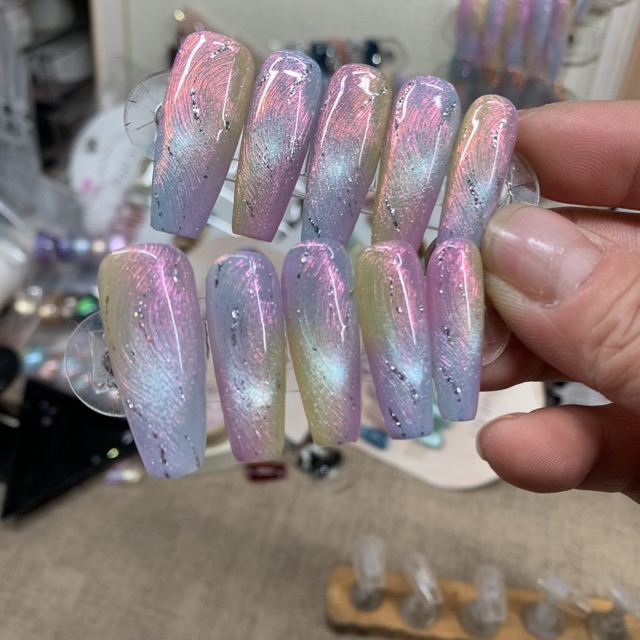 Be the first to review “N028 Jellyfish-Inspired Pink Purple Ombre Cat Eye Long Square Press-On Nails”