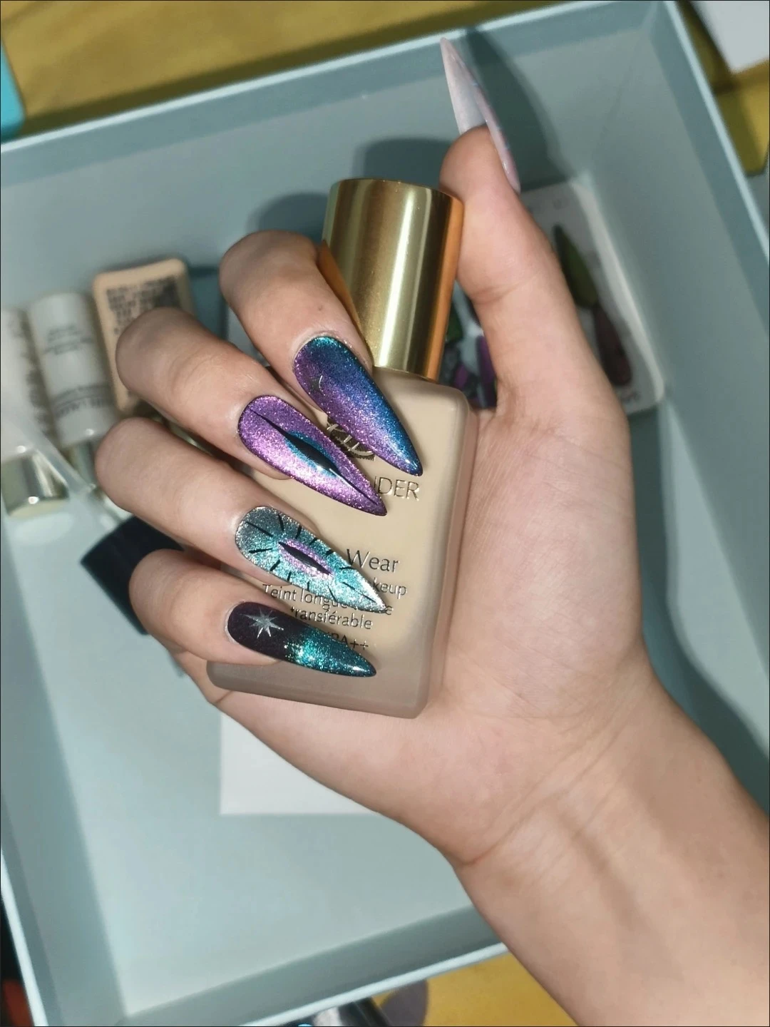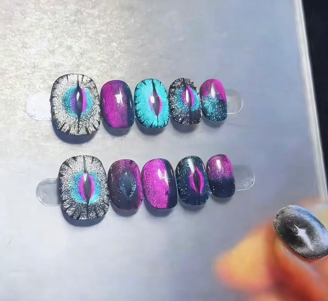 Be the first to review “N030 Blue-Purple Punk Gradient Cat Eye Short Squoval Press-On Nails”
