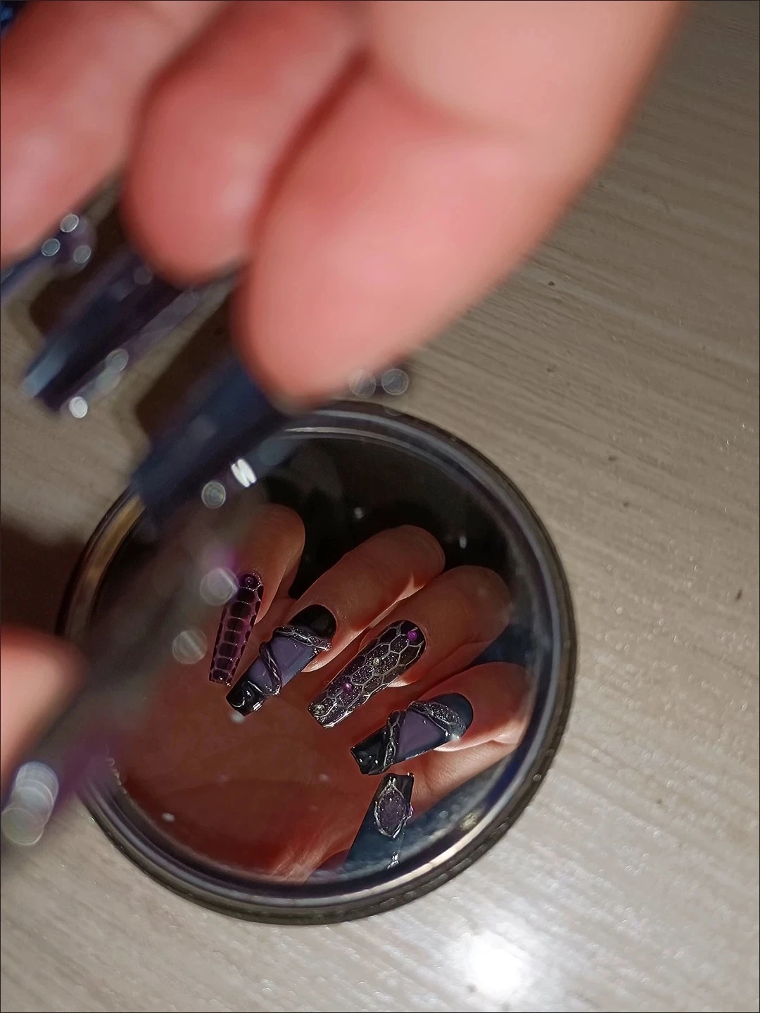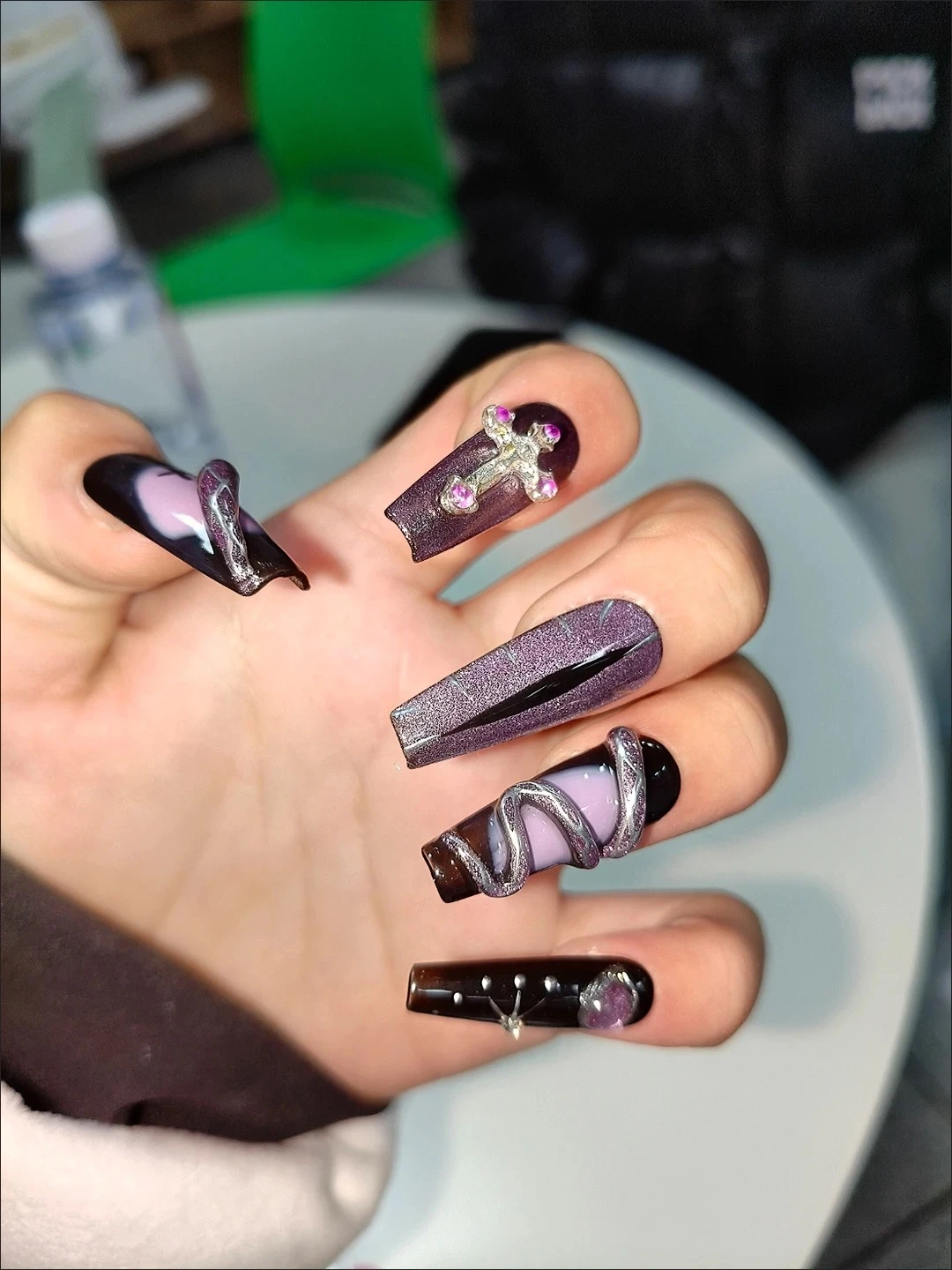 Be the first to review “N035 Dark Punk Purple Cat Eye 3D Snake Long Square Press-On Nails”