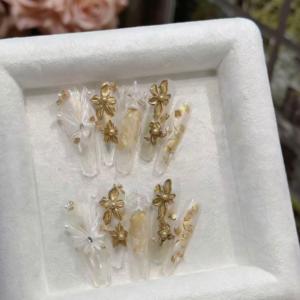 Be the first to review “N054 Luxury Gold Sheer Pearl 3D Carved Long Square Press-On Nails”