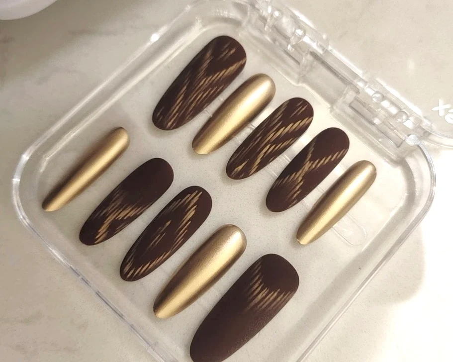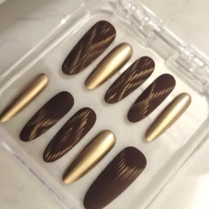 Be the first to review “N066 Gold-Brown Color-Block Matte Leopard Print Almond Press-On Nails”