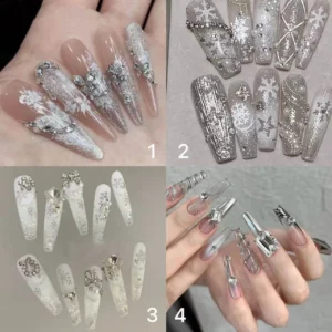 This nail set is created as part of the complete styling —a subtle finishing touch chosen to enhance the overall aesthetic. Please refer to the image below to confirm your nail size and note it when placing your order.
